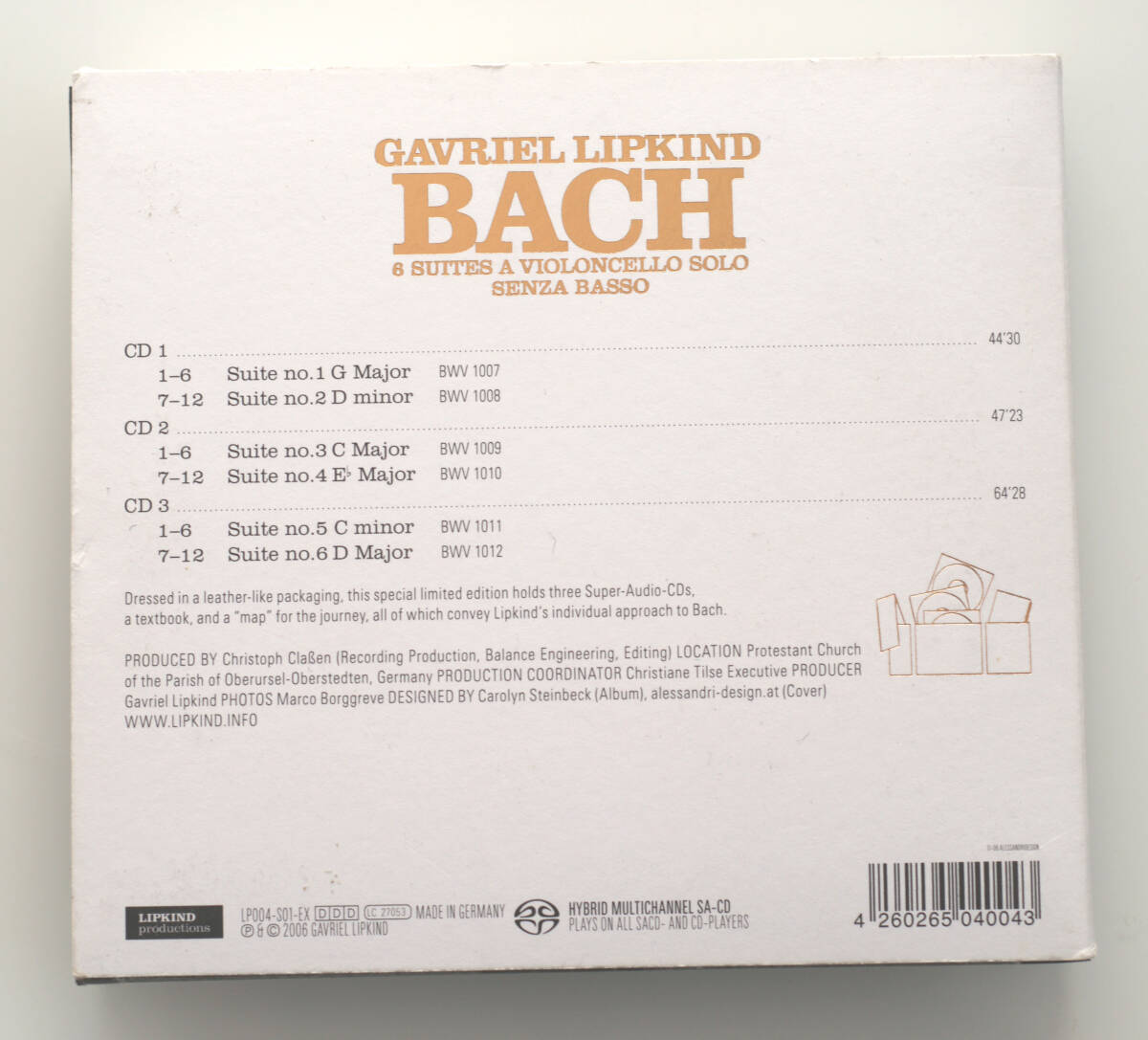 | ★★SACD GAVRIEL LIPKIND ガヴリエル・リプキン J.S.BACH:6 SUITE / J.S.バッハ:無伴奏チェロ組曲全曲 3枚組 | |