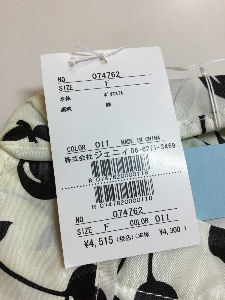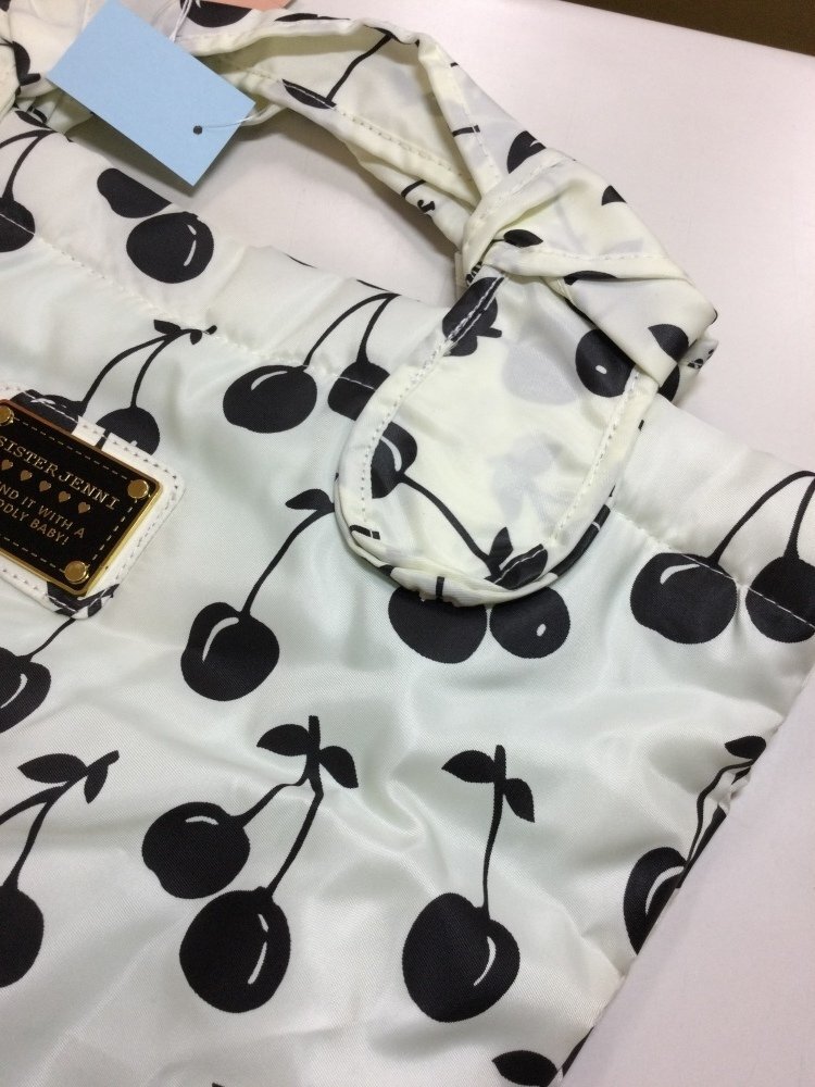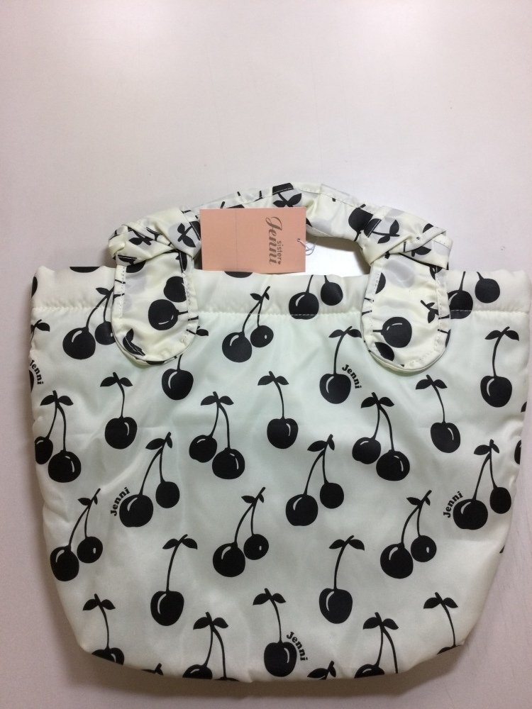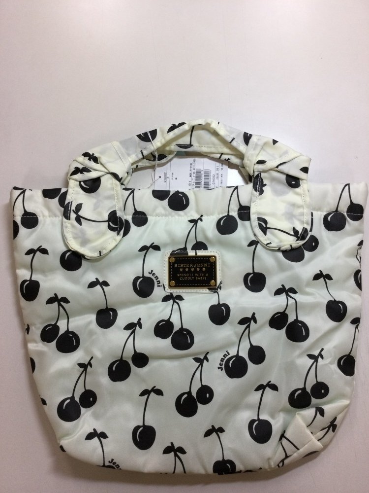| 管理番号:132146 Sister Jenni タグ付き未使用! オフホワイトのトートバッグ 黒サクランボ柄 表示サイズ:F 実寸(参考)