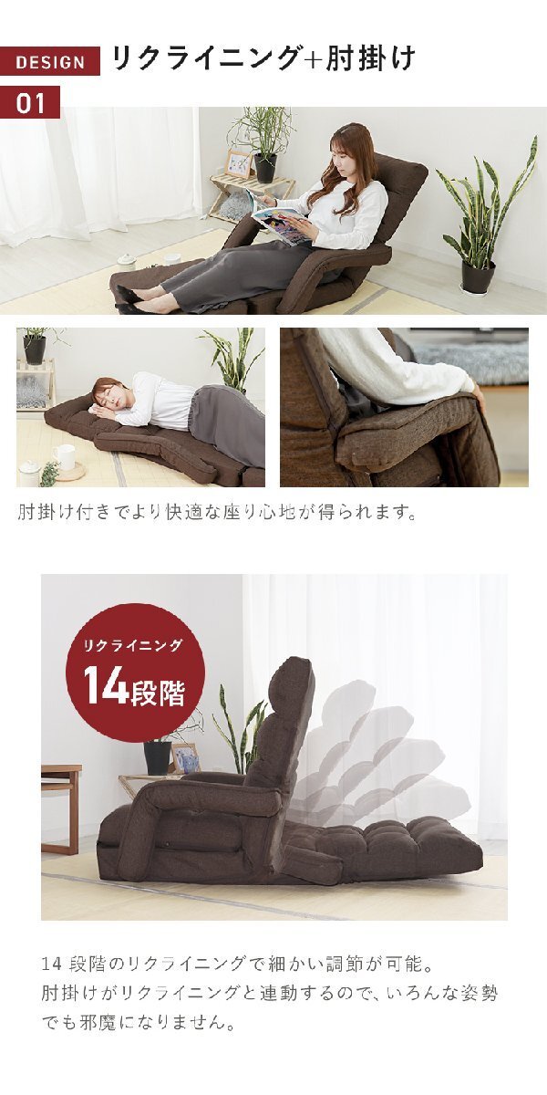 | 肘掛け付きで体に優しくフィットし、背もたれは14段階の角度調節が可能となっており 背もたれを倒して座面を広げてフルフラットな状態にするとソファーベッドにもなります★ 16個のコイルが体圧を上手に分散し、体への負担を軽減してくれます。 大事な内部ギアは、世界でも活躍する実績ある日本メーカー「KoYo」の日本製! 折り畳み可能で、収納や持ち運びがとても便利です。 通気性の良いファブリック素材なので1年中お使い頂けます! 【商品仕様】 カラー:アイボリー 外寸サイズ:(約)幅68x奥行68x高さ70cm フラット時(ベッド)サイズ:(約)165cm 座面厚み:(約)最大24cm 収納時サイズ:(約)幅68x奥行57x高さ32cm 重量:(約)7kg 素材:麻リネン布、ウレタンスポンジ、鋼管 【注意事項】 ・この商品はカバーリングではありません。(洗濯不可) ・生産ロッドが違う場合、柄/色味が若干変わってくる場合がございます。 ・商品を使用して発生した事故/トラブル/破損等につきましては一切の責任を負いかねます。 |