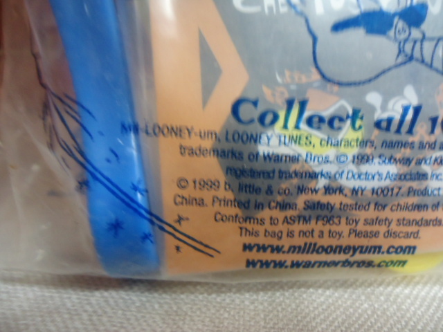 米国にて、個人の方より、購入しました。1999年製。米国SUBWAYで、出たミールトイの10点セットの1点新品未開封物です。プラスチック製。サイズは、縦約7.8センチ・横約6.5センチ・厚み約2センチです。24時間以内に、お手続き入力後、期限内にかんたん決済、出来る方のみ、ご入札をお願い致します。この商品は、1点物です。 2601