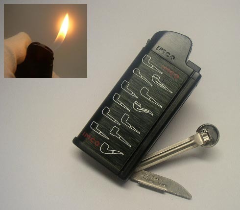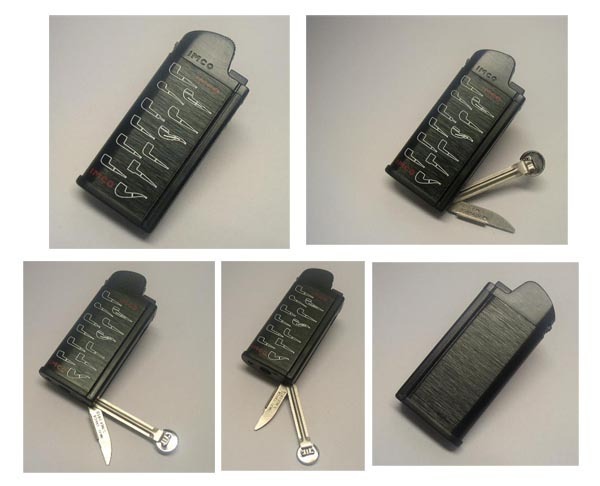 《< イムコ(IMCO)CHIC4(シック4)PIPE 1303G フリント式ガスライター(黒)折りたたみナイフ,タンバー付き ガス再注入式 >》