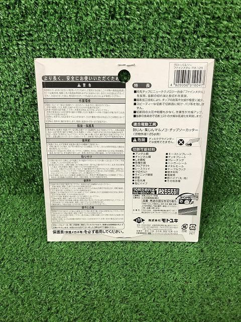 | 商品説明 | 【特長】 ●刃先にニューテクノロジー合金「ファインメタル」を採用しています。 ●最新加工技術により、チップの脱落や欠損が極度に減少します。 ●超硬チップタイプに比べて寿命は5倍、切れ味は3倍です。 【用途】 ●縞鋼板・鉄筋・アングル鋼・ハンガーレール・チャンネル鋼・VLP管・塩ビパイプ・アルミサッシの切断に。 ●鉄工6mm程度の中厚切断材に最適。 【仕様】 ●切断能力(mm)鉄鋼:4 ●切断能力(mm)ステンレス:2 ●外径(mm):125 ●刃厚(mm):1.6 ●穴径(mm):20.0 ●刃数:28 ●最高使用回転数(rpm):9600 【材質/仕上】 ●台金:工具鋼 ●チップ:サーメット 【質量】150g ●ディスクグラインダーでは使用できません。 ●高速砥石切断機では使用できません。 【レターパックライト 全国430円】 | 出品店舗 | スマイルサンタ 松本店 |