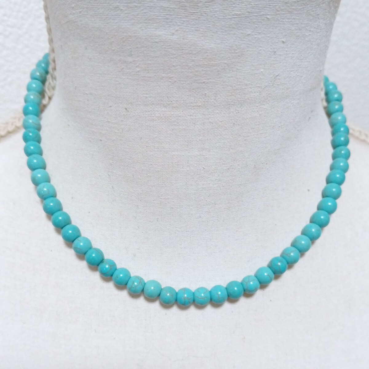 きれいな空青色、ハウライトターコイズのネックレスです。特有の斑模様があります。| 出价者 | 信用 | 价格 | 时间 |