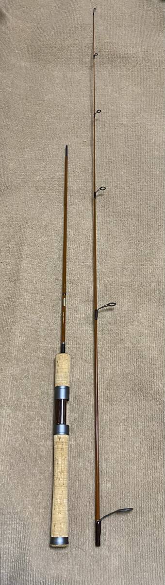 シルバークリークのフィッシングエリアスペシャルと銘打ったロッドです。ダークオレンジのブランクスやウッドのリールシートの分厚いコーティングが高級感を際立たせます。ブランクス、ガイド、ガイドスレッドともにきれいな状態と思います。