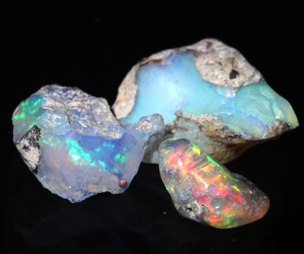 | 天然ファイアーオパール原石 3Pcs 7.25ct エチオピア | |||||