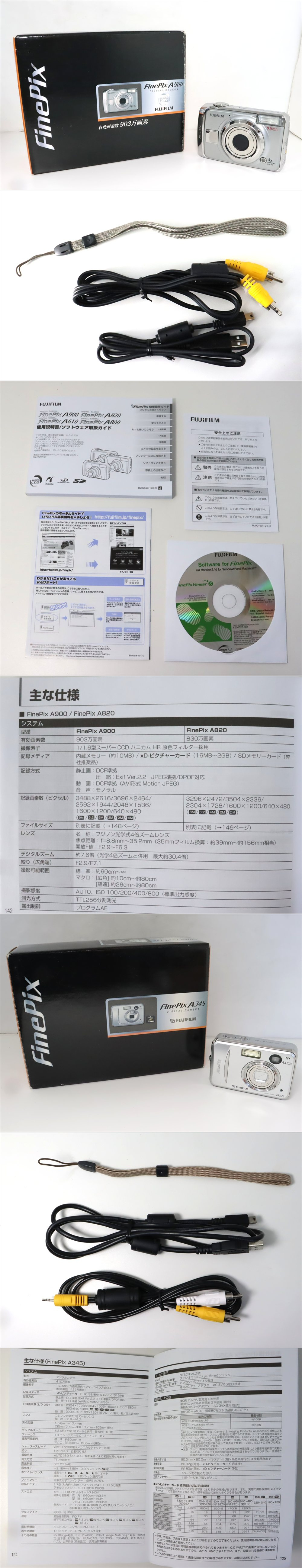 | サイズ等 | FinePix A345 90×60×30.3mm(幅×奥行×高さ) FinePix A900 97.3×61.7×32.1mm(幅×奥行×高さ) |