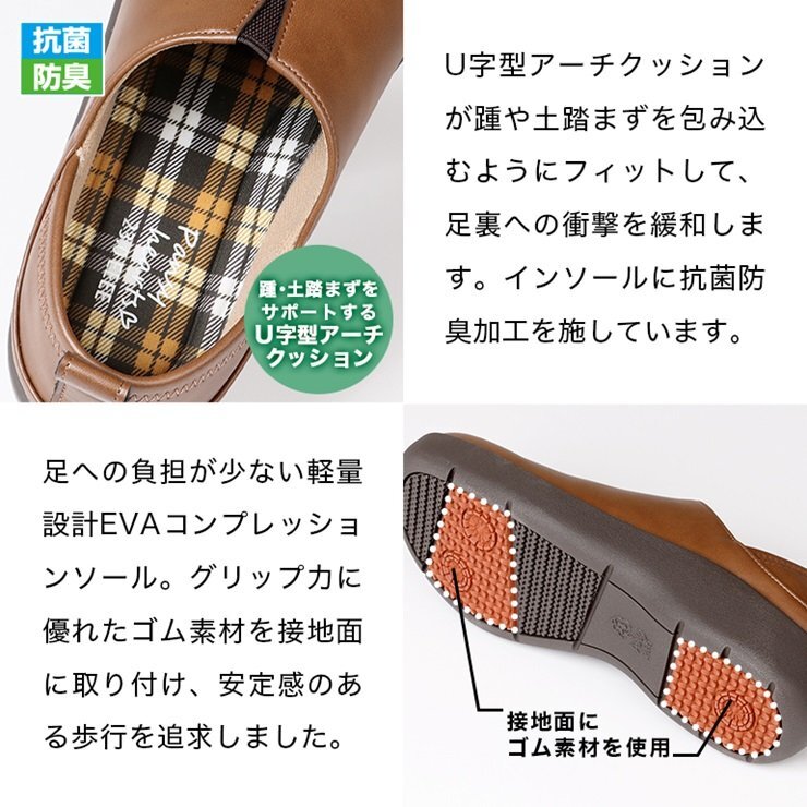 | かかと部分を踏み込んでサンダル風にも履ける、便利な2WAYスリッポンシューズ。 足元を鮮やかに彩るビビッドカラー!ゆったり履ける4E設計でむくみにお悩みの方にもおすすめ♪ かかと部分を倒して履ける2WAYデザイン ゆったり4Eの木型で設計 履き口に脱ぎ履きしやすいゴム素材付き 踵・土踏まずを包み込むようにフィットするU字型アーチサポート 安全で長期間効果が持続する抗菌防臭加工を施した中敷 グリップ力に優れたゴム素材を接地面に取り付けたEVAコンプレッションソール | |