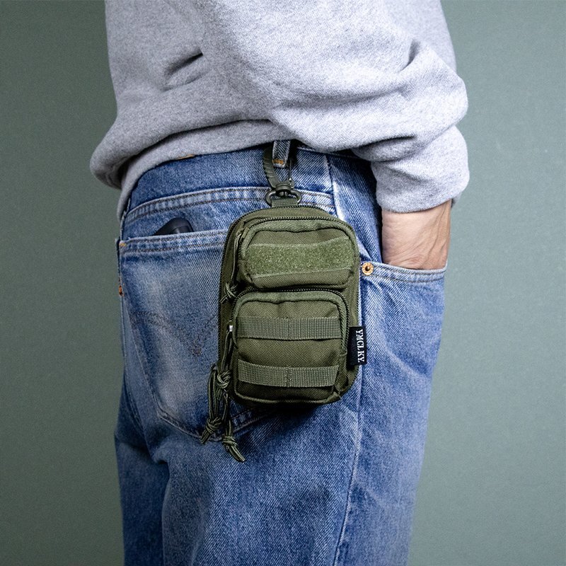 上部にはカラビナ付きのため、リュックやバッグ、ベルトループに装着可能です。