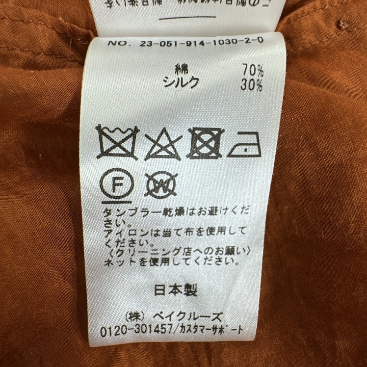 【商品詳細】ブランド名:IENA LA BOUCLE (イエナラブークル)カラー:オレンジサイズ:FREE【実寸サイズ】着丈:77cm身幅:66cm肩幅:57cm袖丈:40.5cm〈素人採寸の為、多少の誤差はご容赦ください〉【素材】【商品説明】【コンディション】ランク:中古A新品新品商品(タグ有り)未使用品未使用商品。(タグ無し)(検品、商品画像撮影の為、開封の場合あり)中古A使用された形跡が少なく、状態の良い商品。中古B使用感はありますが、問題なく使える商品。中古C使用感があり、細かい傷やダメージがある商品。中古D目立った汚れやダメージがある商品。コンディション詳細:※商品コード:ITC0LGO4T7BF■----------------------【注意事項】 ※店頭展開、ストック品以外に倉庫保管の在庫の場合が御座います。土日祝が倉庫が非稼働の為、受注を頂いたタイミングに応じて、平日期間中でのピッキング・発送作業となりますためお時間を頂く場合が御座いますので予めご了承下さいますようお願い申し上げます。お受け取りをお急ぎのお客様は前もってコメントよりご連絡をお願い致します。・複数購入頂いた場合発送先店舗が同一の場合のみ同梱対応いたします。・商品画像に写っているもの以外の付属品はございません。 ・使用回数や購入時期については使用者本人ではないためお答えが困難です。申し訳ございません。 ・値下げ、専用の対応は原則行なっておりません。 ・コメントの対応可能な時間は11:00〜19:00です。 この時間以外でも可能な場合はご回答差し上げます。 ・上記の対応可能時間内のコメントであっても返信は翌日以降になる場合がございます、ご了承下さい。 ・お客様都合によるキャンセルは原則お受けしておりません。 ・掲載商品は店頭でも同時に販売しております。 店頭での売れ違い等でご注文をキャンセルさせて頂くことがございます。・店頭にて同時販売しておりますので、画像と状態の変化がある場合がございます。・展開店舗が記載と異なる場合がございますので実店舗に来店される際は前もってコメント欄から在庫の確認をお願いいたします。・店舗名 CIRCULABLE SUPPLY下北沢店・TEL 03-6629-1362・住所 東京都世田谷区代沢5-30-2 AG下北沢ビル1F