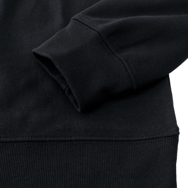 Lサイズ チェスト96~104 身長175~185 ※写真は別サイズを使用している場合がございます※ ※商品に記載されたサイズ・寸法です※ 肩幅58cm 身幅61cm 袖丈61cm 着丈72cm ※ドロップショルダーのため、やや大きめのシルエットです。※ ※伸縮性の高い素材のため、多少の誤差が生じる場合がございます。※ 本体:ポリエステル76% 綿24% リブ部分:ポリエステル61% 綿35% ポリウレタン4% ブラック |
