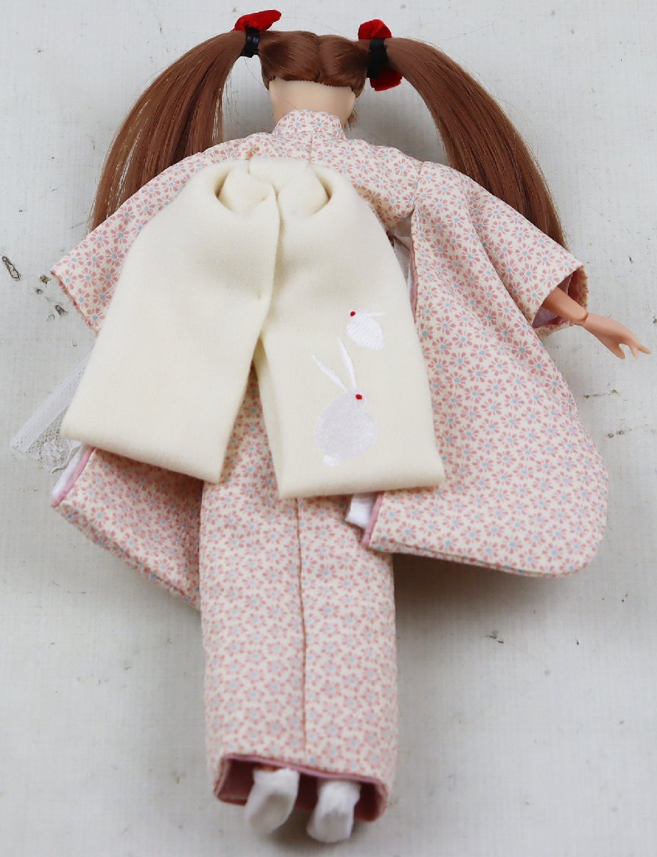 (3047105I) *中古品です。 人形 『杏/Annz Doll ユキウサギ』 ADWORK/アドワーク 全高:約27cm レトロカフェメイド風スタイル *付属品 箱 フード付きマント エプロン ポックリ ポシェット *外観 首元が割れています。 リボンのヒモがなくなっており、ビニタイで代用されています。 着物の下地・帯・ポシェットなど、白い部分は経年による変色を感じます。また、衣装の一部に細かなヨゴレがあります。 ポックリには若干のスレ・キズ等があります。 箱には細かなスレ・ヨゴレ等があります。 | ||||