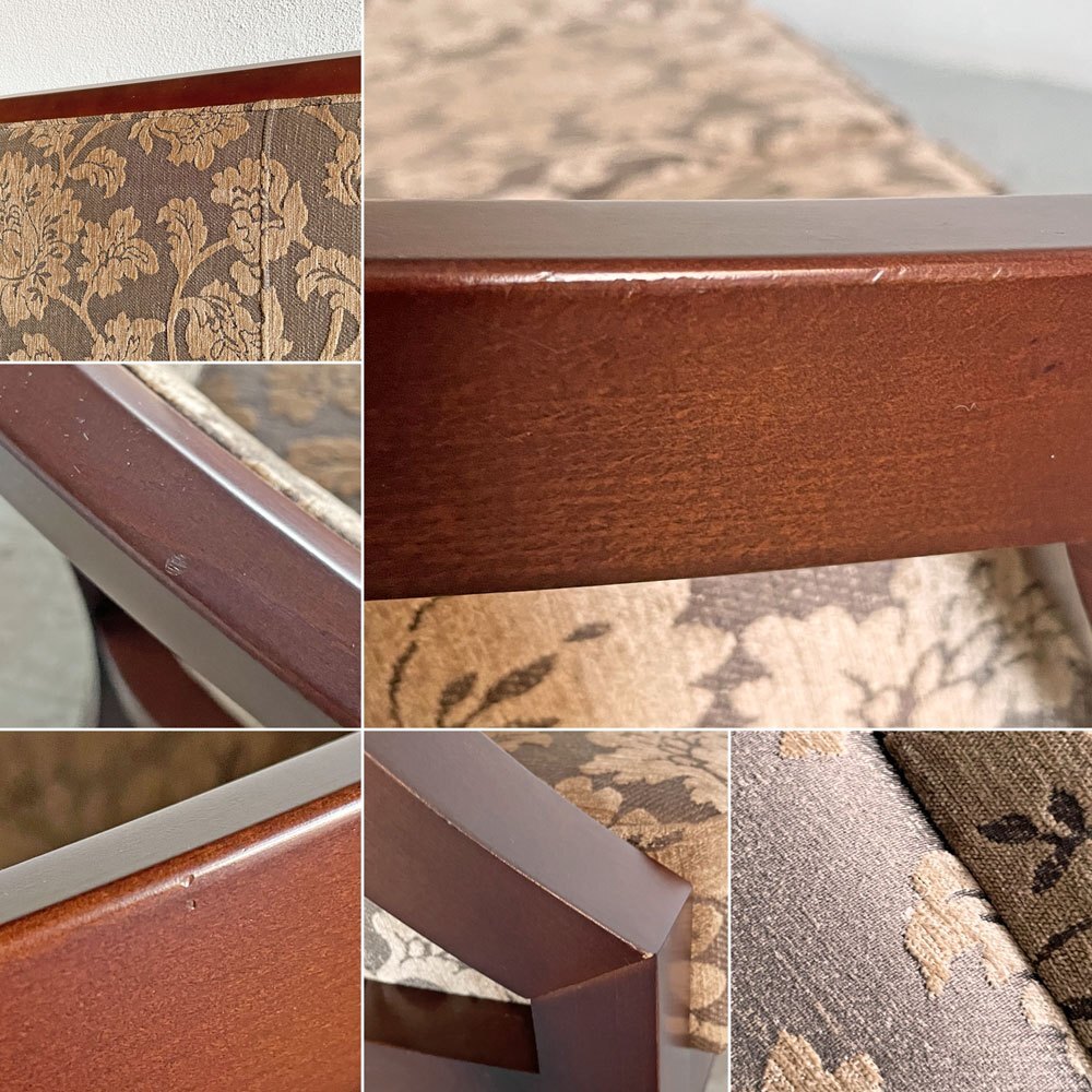 | コンディション | フレームには擦れや傷、打痕、表面塗装の剥がれ、黒ずみ汚れ等が見受けられます。また、ファブリックには若干の擦れや汚れがございますが、生地の特性上大きく目立つものではございません。なお、背もたれクッション同士を繋ぐ革紐が1箇所欠品しており、中央と向かって右側を連結することができません。ご使用には支障はございませんが予めご承知おきくださいませ。その他、がたつきやぐらつきといったダメージはなく、今後も安心して実用いただけるコンディションを保っております。 *ソファ単品での販売です。 ※特筆すべきコンディションは出来るだけ記載させて頂きますが、細かい擦れや傷、汚れ等を完全にお伝えする事は出来ません。画像をご確認の上、ご入札をご検討下さいませ。 ※取扱説明書や保証書等は記載が無い限り付属いたしません。 |