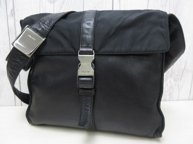 | 美品 PRADA プラダ テスート ショルダーバッグ バッグ ナイロン×ナッパレザー 黒 92425Y | ||