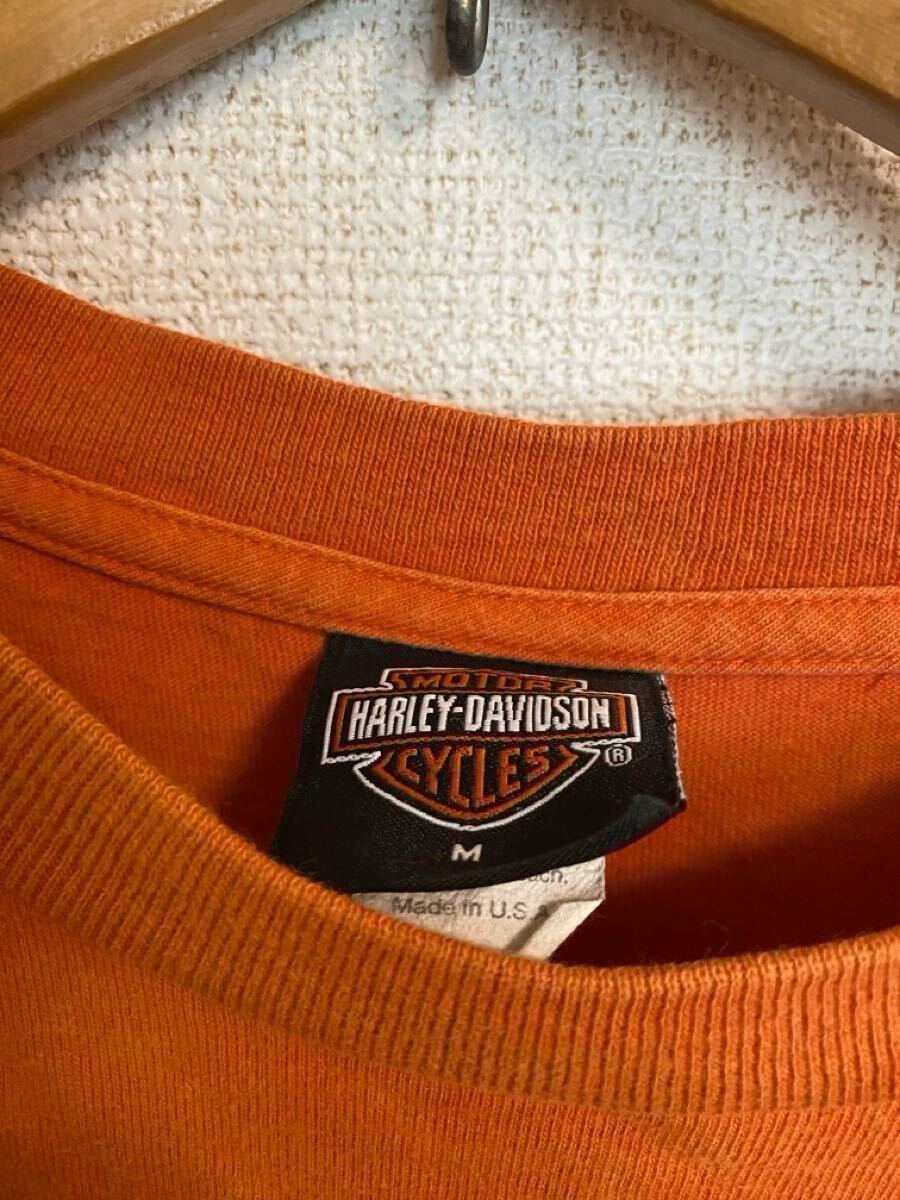 00s HARLEY DAVIDSON 胸ポケTシャツ。色はオレンジ。素材はコットン100%、USA製。両面プリント、2003年コピーライト。| 出价者 | 信用 | 价格 | 时间 |