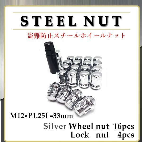 | ロックナット 付 ホイールナット スチールナット 20個 M12 P1.25 盗難防止 シルバー 袋ナット ラグナット 日産 スバル スズキ | |