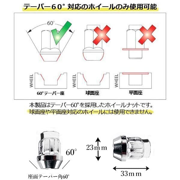 | 商品説明 | ★高強度スチール素材を使って鍛造されているナットです。 ★鉄に炭素を加えて、いわゆる鋼(はがね)になった原材料から作られているので、とにかく硬い! ★アルミに比べて強度があります。 ★耐久性が上がり安心感も増します。長いナットに飽きた方にオススメです。 ★カラーは人気のシルバー。 【適合】 日産 スバル スズキ (トヨタ、マツダ、三菱の一部車種も適合可能) ■袋タイプ ■スチールナット スチール製 ■カラー/シルバー ■M12xP1.25 ■20本(内4本ロックナット) ■長さ/33mm ■ソケット付属(17HEX) ■ロック専用ソケット付属 ■テーパー角60° |