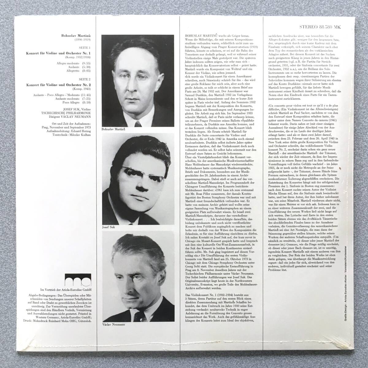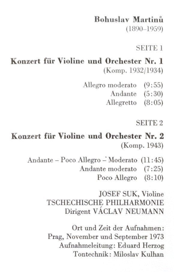 【未開封新品】独Supraphon 世界初録音 独初版 スーク ノイマン/チェコPO マルティヌー ヴァイオリン協奏曲 第1/2番 壮麗で透徹な響き
