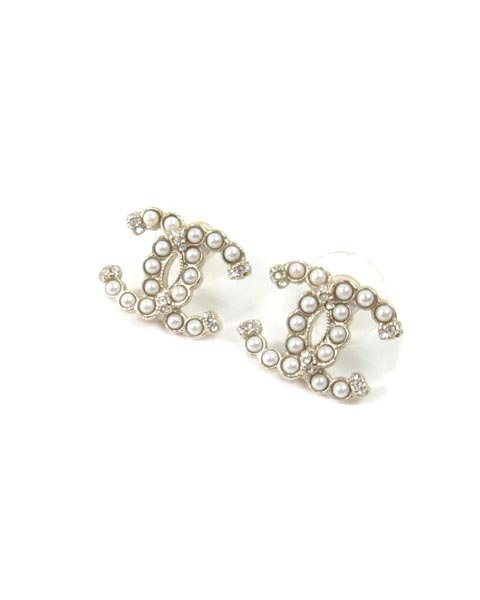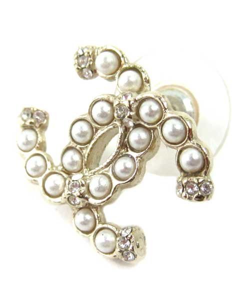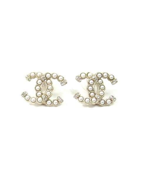 | シャネル定番のCC型ピアス。パールとクリアーストーンがついた華やかなデザイン。普段使いから華やかなお席までお使い頂けます。上品で大人コーディネートアクセとしておすすめです。 |