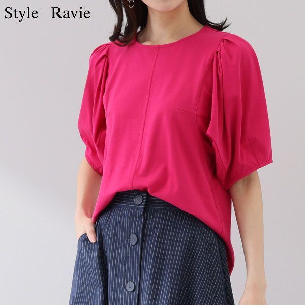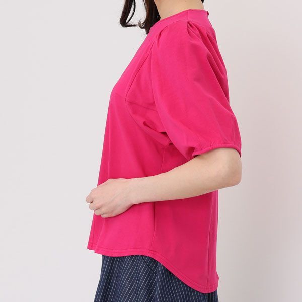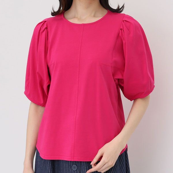 | 内 容 | ■スタイル・ラヴィー スタイルアップデザイン プルオーバー ■サイズ 9号(M) 胸囲96cm 肩幅31cm 袖丈33cm 着丈63-54cm ■素材 綿100% ■詳細 ・開きの場所:なし ・開きの仕様:(後中心)ボタン1個 ・襟のデザイン:ラウンドネック ・袖の長さ:五分袖 ・袖のデザイン:パフスリーブ ・ウエストシルエット:ストレート ・裏地:なし ・裾スリット:なし ・肩パット:なし ・ポケット:なし ■カラー チェリー 天然繊維特有の爽やかな肌触りとしなやかさがある、 コットン100%の軽やかなカットソー素材を使用。 身頃はダーツと切り替えで立体的にカッティングしたパターンで作製。 カットソーアイテムと思えないような、美しいシルエットが魅力的です。 袖付けにタックを、袖口にダーツを配して、 立体的なコンシャススリーブにデザインしました。 |
