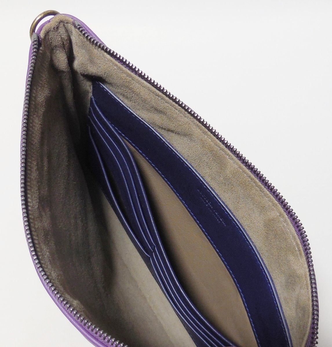 素材、カラー ラムスキン、カラーはMONALISA+ATLANTIC(パープル系+ネイビーブルー系)、アンティーク調ダークゴールドの金具