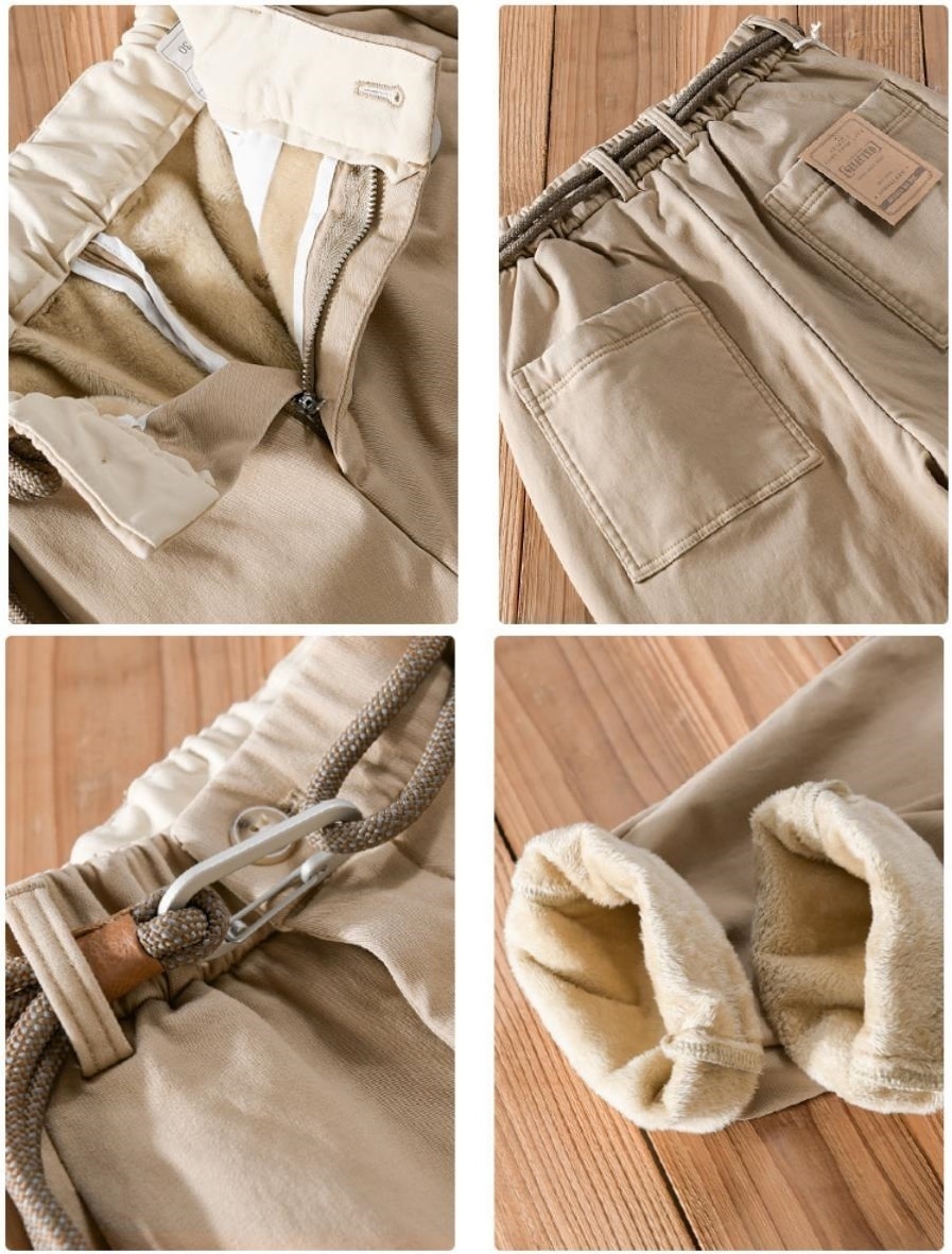 カーゴパンツ 裏フリース 防寒 ワークパンツ メンズ*新品 冬用裏ボア起毛 作業ズボン アウトドアパンツ ボトムス【Y7628】カーキ W31