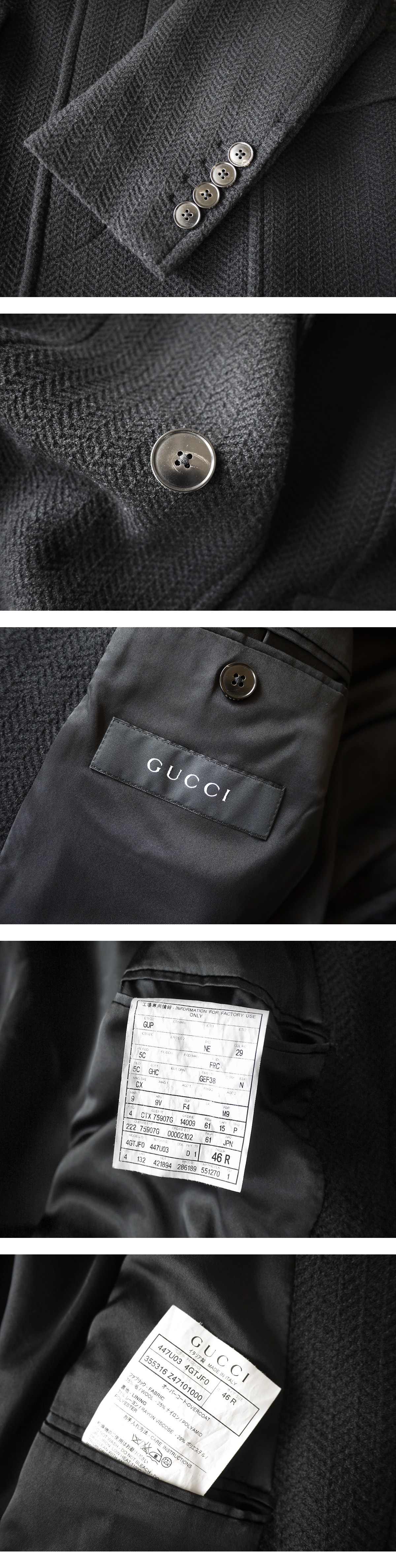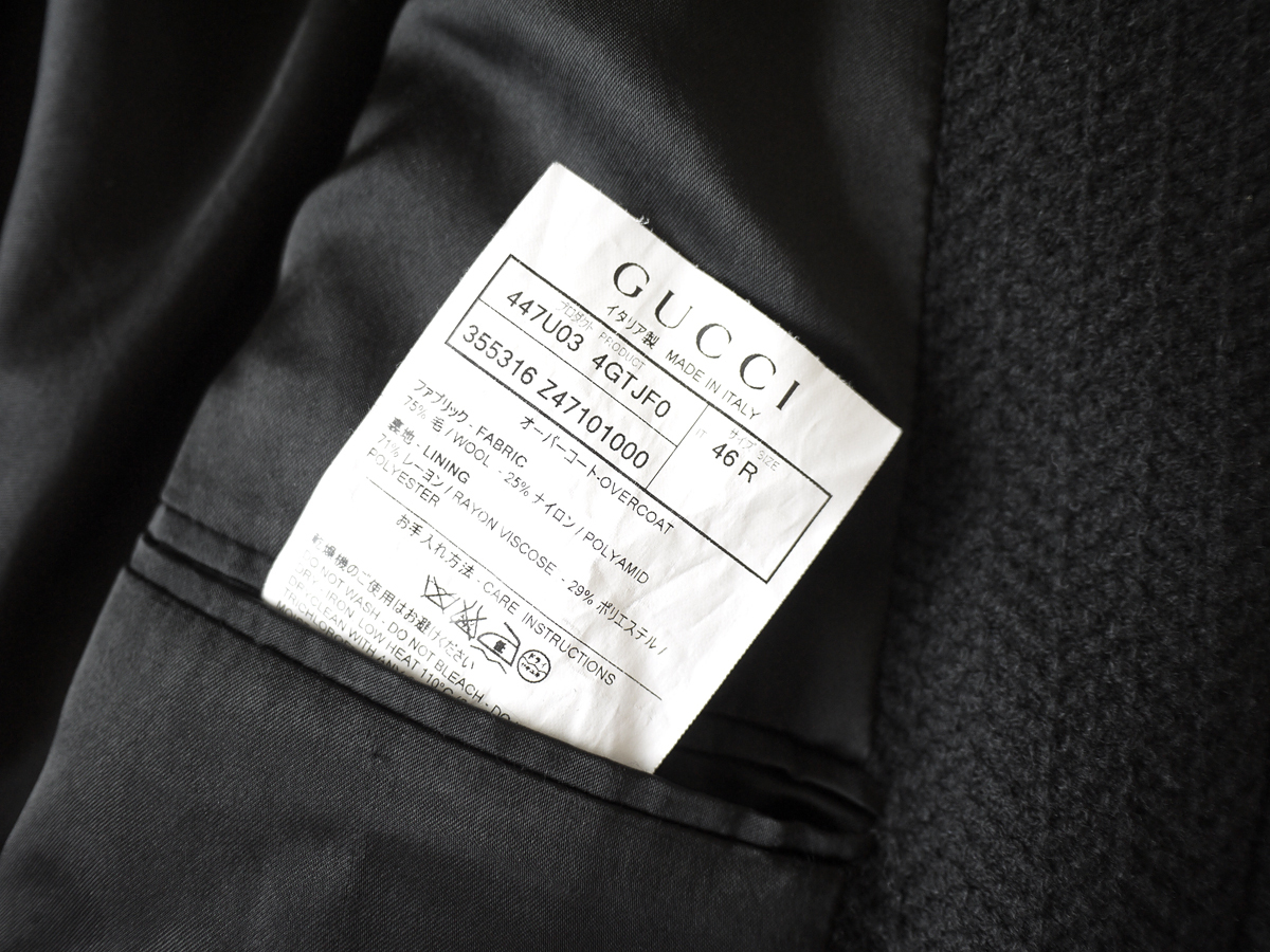 brand GUCCI made in Italy price \450,000(参考上代) material wool 75% nylon 25% color Black size 46 肩幅44 着丈91 袖丈63 身幅51(多少の誤差はご了承ください。) 状態 使用感の少ないきれいなお品物です。裏地含めダメージは見受けられず末永くご使用頂ける状態です。 |