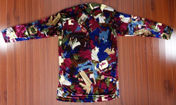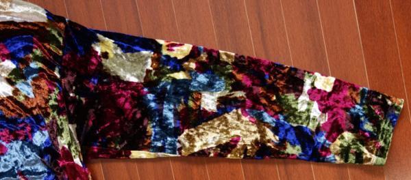 出品は画像の物のみです。毛が立ったような生地なのでおそらくベロア地かと思います。使用品ですのでしわ、擦れや汚れはあるかと思います。ただ色合いからか特に目立つような汚れは無いです。サイズは着丈が80cmくらい、袖丈は50cmくらい、身幅は50cmくらい、肩幅は45cmくらいです。生地はレーヨン80%、ナイロン18%、ポリウレタン2%です。