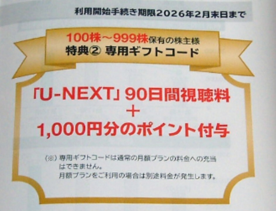 【最新】U-NEXT 株主優待 90日無料視聴&千ポイント(コード通知のみ)| 出价者 | 信用 | 价格 | 时间 |