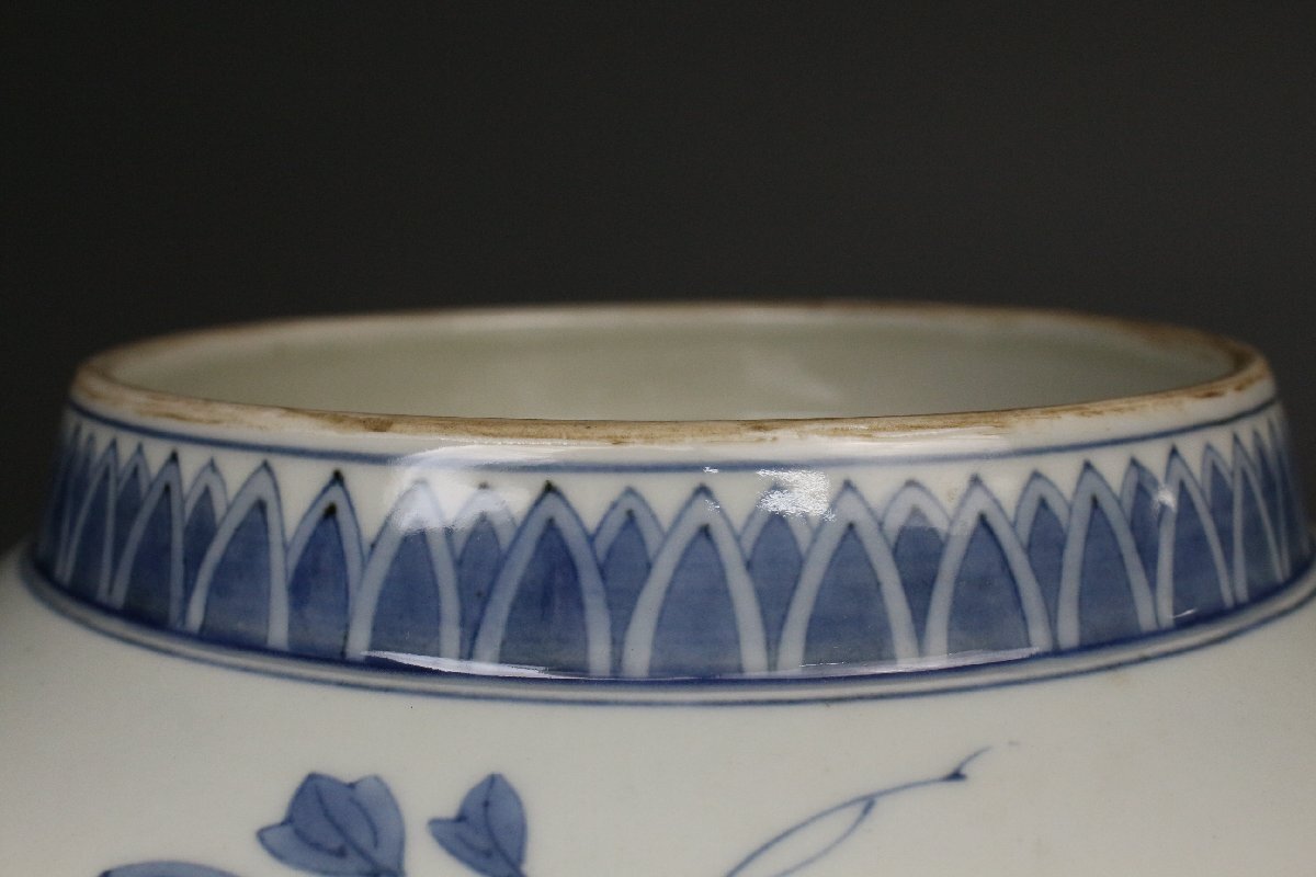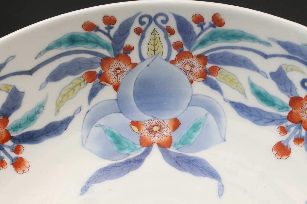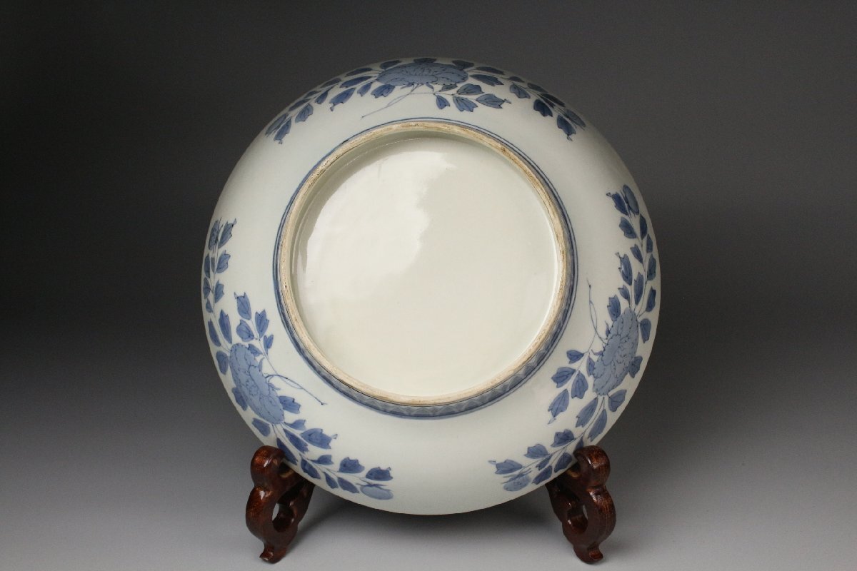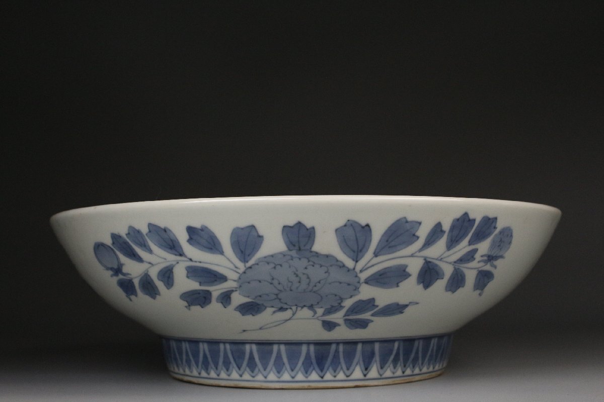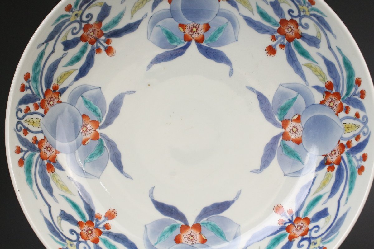 [.EE]25.11 25111717T* * * 商品詳細 * * * ここでしか出逢うことのできない唯一の美をご紹介させて頂きます。 国内磁器の最高峰と称賛される「鍋島焼」 徳川将軍家などの献上品として採算度外視で造られた特別な焼物は 切り立った山々に囲まれた窯場で熟練の職人によって焼成されました。 まさに、当時において一庶民が手にすることのできない門外不出の作品でございます。 本品は30㎝の大きな器に色絵と染付によって桃と花を一周して描いた作品でございます。 呉須の濃淡を描き分けることで絵に立体感を生み、鍋島焼ならではの 色使いが上品に華やかさを演出します。 だみやブレのない絵付けは 作り手の卓越した技巧の高さ伺える見事な仕上がりです。 器の裏には牡丹模様が描かれ高台は蓮弁模様となっており、どの角度から見ても見事な絵付けをご堪能頂けます。 全体的に状態も素晴らしく当時の威厳のある風格を今に伝える逸品でございます。 この機会に是非お手元にてご堪能ください。 ■商品内容/ 皿、箱 ■サイズ/横30㎝×高8.5 箱:四方32㎝×高11.5㎝ ■状態/経年による スレ、小傷、汚れ 箱にスレ、傷、汚れ、蓋の割れがございます。 ※写真にてご確認、ご了承の上ご入札下さい。 ※皿立ては付属致しません。