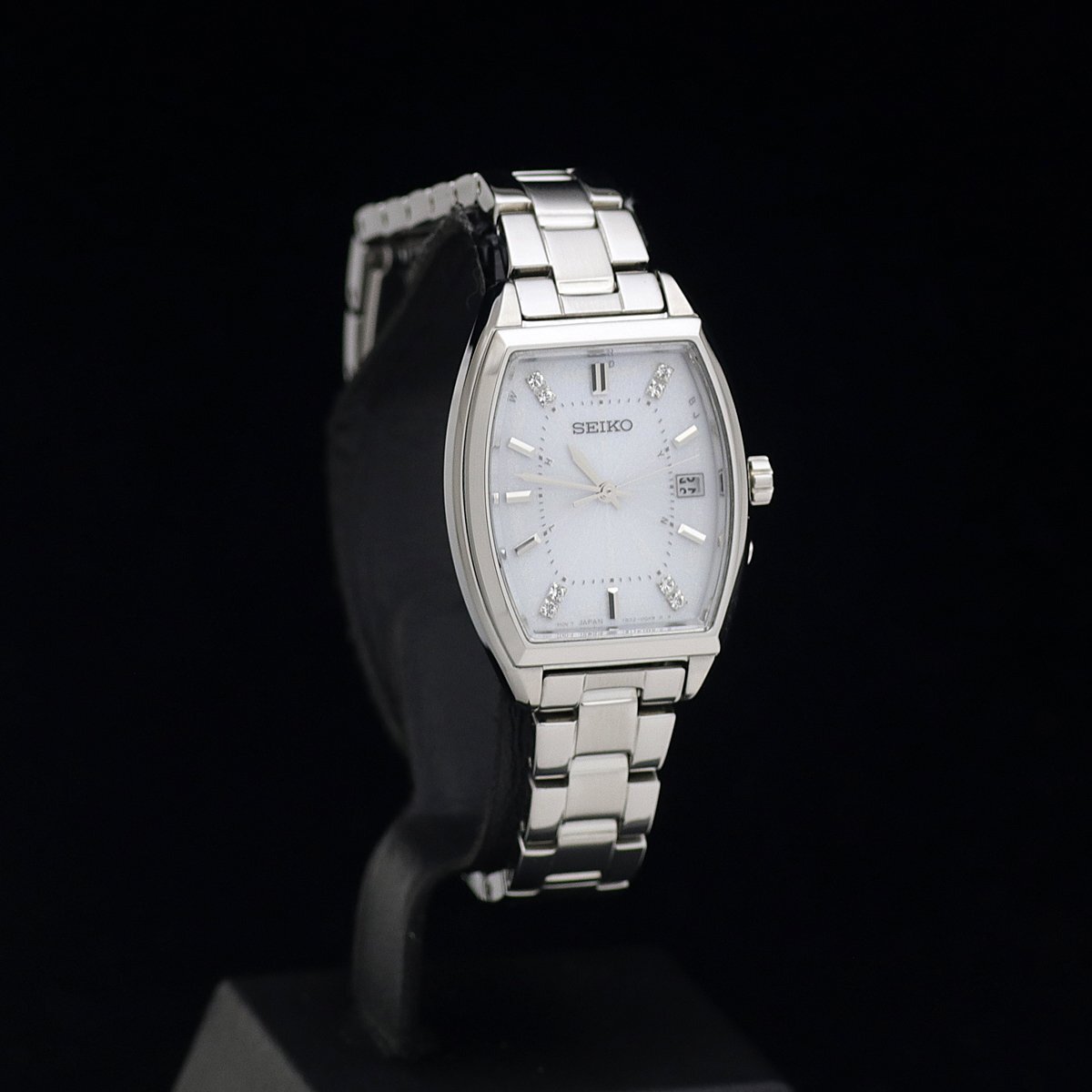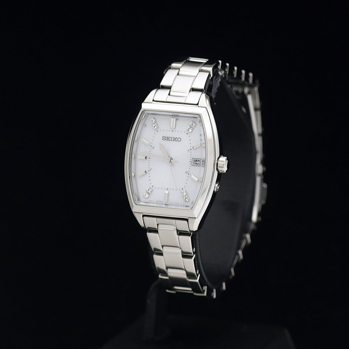 | 商品説明 | ![]() ![]() ![]() ●SEIKO セイコー セイコーセレクション 2025 Raise the Future Special Edition ●Ref.SWFH143 ●Cal:1B22-0CV0 ●シリアル:4O0*** ●レディース/電波ソーラー ●ケース/ブレス素材:SS/SS ●文字盤色:シルバー/クリスタル ●ベゼル径:24mm ●ケース径:27mm(リューズ込み) ●ケース厚:8.7mm ●腕周り:18cm ●重さ:53.4g ●定価:¥49,500-(税込) ●付属品:なし ●ランク:SA~A 【ランク詳細】 S 新品、未使用 SA 極上美品(細かな傷も少なく、とても綺麗) A 美品(細かな傷はあるが、目立つ傷がない) B USED(細かな傷はあるが、目立つ傷が少ない) C USED(細かな傷があり、目立つ傷が多少ある) J ジャンク(動作不良、一部動作不良、動作未確認) ●薄い擦り傷はありますが、使用感は少なく美品です。 ●ガラスは無傷です。針、文字盤ともにきれいです。 ●動作確認済みで、正常に動作します。日付がずれていますが、日付の変わる時間帯に撮影したためで正常です。 ●詳細は メーカーサイトをご覧ください。 ●現行、限定モデルです。 ●新品、未使用品、かなりきれいで手を加える必要がないと判断した商品以外は、弊社もしくは専門の業者にて、専用の器材を使って洗浄、研磨等を行い、出来るだけきれいな状態でお届けできるよう心がけております。また梱包の際には除菌シートにて清掃を行った上で発送させていただきます。(一部革素材は行いません) ●ご質問、ご不明点は「m1t2m3_2006@sun.cims.jp」までご連絡ください。 | ||||||||||||||||