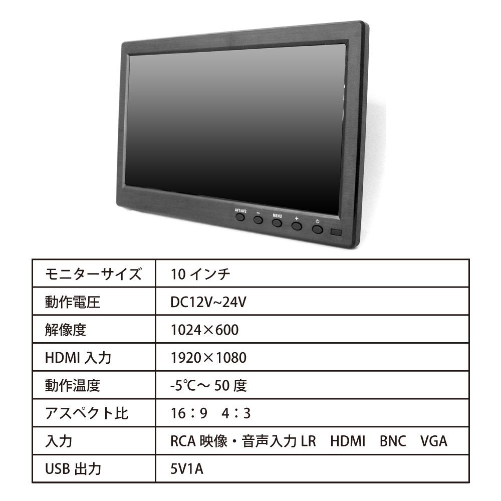 ★オンダッシュモニター 10インチ IPS液晶 HDMI VGA 液晶モニター 12V24V薄型 スピーカー スマホ対応 高画質 D1004BH