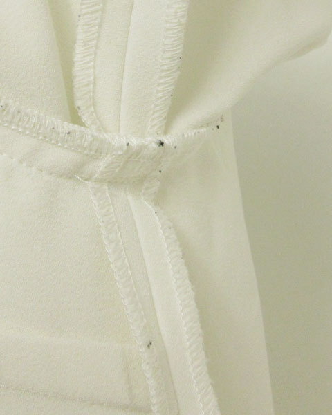 | ゆったりとしたシルエット ストレッチの効いた素材つかいで 着心地◎ モノトーンカラーでコーディネートもしやすく オススメ 裏側、アームホール周りに毛玉、後身頃裾上に薄汚れ有り。 バスト約93cm 着丈約47.5cm 袖丈約33cm 肩幅約32.5cm 【サイズ】:(2) 【素 材】:(ポリエステル88%ポリウレタン12% 別布ポリエステル88%ポリウレタン12%) 【 色 】:(オフ白、黒) 【程 度】:(AB) **管理番号** 7172-20151106-009 355 015 | ||||