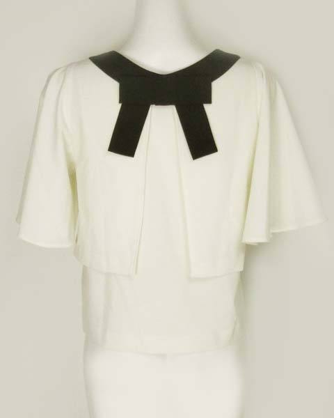| クイーンズコート(QUEENSCOURT)オフ白黒リボン付ブラウス | ||||