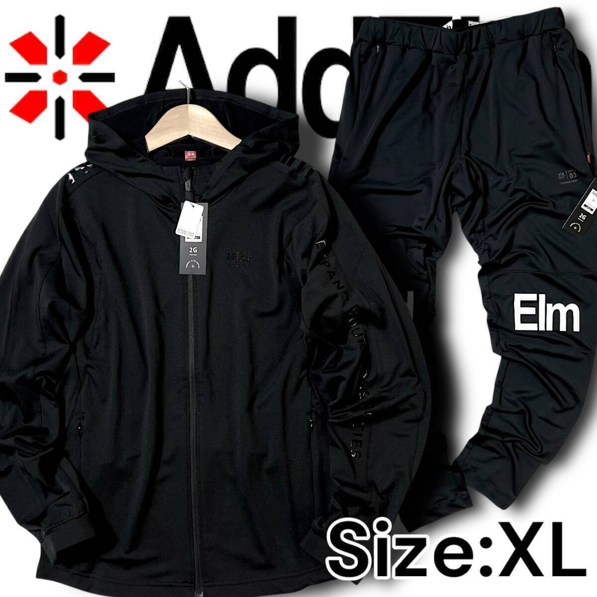 タイトル 新品 AddElm アドエルム 定価3.5万 ISPOミュンヘンBEST受賞モデル add.03テクノロジー搭載 袖プリント ビッグロゴ 3D設計 ストレッチ ジャケット パーカー フーディー パンツ セットアップ 上下セット トレーニングウェア XL LL 相当 メンズ GOLF スポーツ レジャー アウトドア 普段使い タウンユース ブラック系