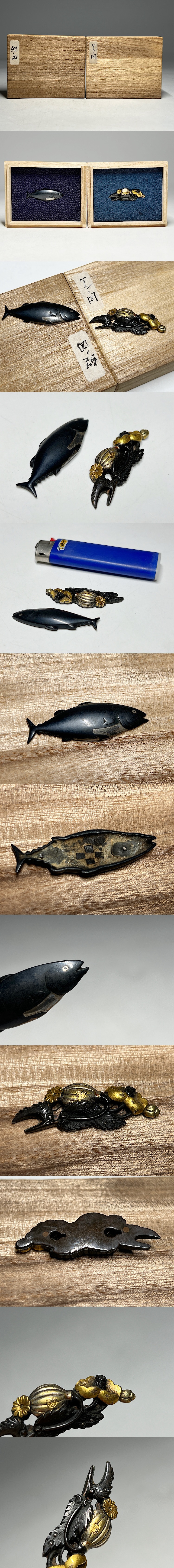 目貫 2点 鰹ノ図 ケシノ図 箱付 金工 刀装具 ◆商品詳細 寸法(約):鰹ノ図:1.4x4.3(高×幅cm) ケシノ図:1.5x4.4(高×幅cm) ※寸法に若干の誤差が生じる場合もございます。 汚れ、スレ、鰹ノ図に錆がありますので、 ご承知の上入札お願いします。 状態等画像にてご確認の上ご入札よろしくお願いいたします。 ◆発送先等のご連絡とお支払いについて ※発送先等のご連絡 落札時から48時間以内にお願い致します。 ※お支払 かんたん決済の期限内にお願い致します。 複数点落札時にまとめて取引の場合(72時間内)に、 まとめて取引の取引手順(落札者方の操作)を参考にお願い致します。 梱包したサイズを測って、地方によって送料を決めますので、よろしくお願いします。 ◆掲載画像について ※画像は現物を撮影しておりますが、照度、遮光、モニターによっては実物と 色目が異なって見えることがありますのでご注意ください。掲載画像では確認 できない傷や汚れがある可能性もございます、あくまで 中古品であるということをご承知の上、御入札をお願い致します。 ◆補償について 商品到着後はすぐに状態の確認をお願い致します。 商品の破損等がございまし たら、箱や梱包材など全てそのままの状態で保存し、お早めにご連絡ください。 (到着日から一週間以上経過、梱包材の廃棄済み等の場合、保証は致しかねます のでご注意ください。) ◆返品について 思っていたイメージと違う、などのお客様主観による返品はお受けできません ので、予めご了承ください。ノークレーム、ノーリターンでお願いします。届 いた商品が商品説明と著しく異なる場合(寸法、キズ記載ミスなど)のみ承り ます。早めにご連絡ください。 ◆注意事項 当方の希望価格と隔たりがある場合は、終了前にやむなく取下げさせて頂く場 合がございます。 ※商品ご落札翌日から4日間以内にご連絡が取れない場合は、入札取消の処置を 取らさせていただく場合がございます。 ※評価の悪い方は取り消す場合がございます。 ※原則として当方の不備以外のキャンセル・返品・返金は受け付けておりません。 以上の点を予めご了承頂いた上で、入札・落札お願い致します。 ◆発送方法 ▼ゆうパック(補償あり/追跡あり) 梱包後のサイズ:~約60cm ※送料全国一律880円 (但し北海道、沖縄、離島は+500円いただきます。) 発送元は静岡県となります。 ( 商品の組み合わせによっては同梱をお断りさせていただく場合があります。) ※大型商品について 郵便局の規定を超える商品の場合は、佐川急便またはヤマトでの発送となります。 |