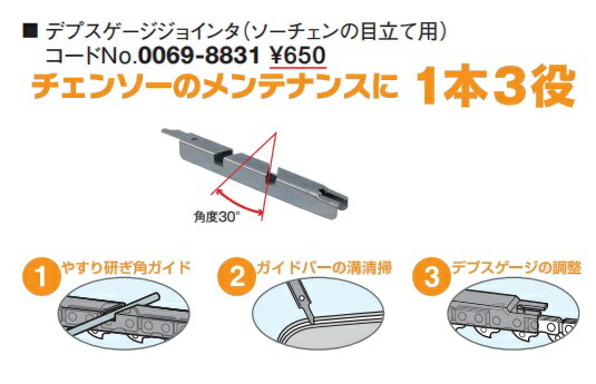 HiKOKI ハイコーキ(旧日立工機)デプスゲージジョインタ 0069-8831チェンソーのメンテナンスに1本3役■特長・やすり研ぎ角ガイド・ガイドバー溝清掃・デプスゲージの調整
