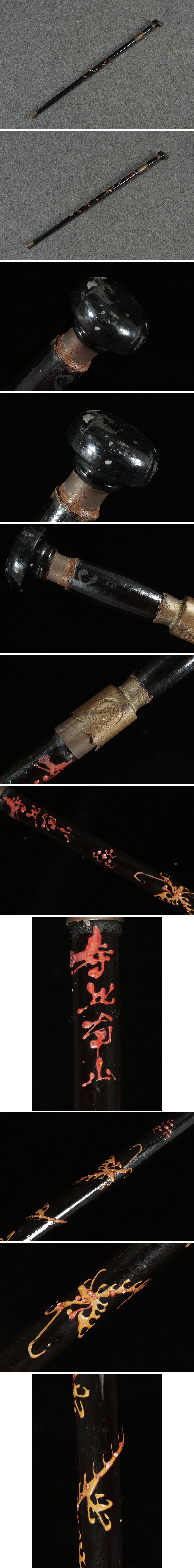 | ◆ 中国古玩 黒漆塗 黄銅縁 堆錦 雲龍図 仕込み杖 全長86.5cm / 刃長44.5cm 模造刀・藏刀手杖 武具 中国古美術 ◆
