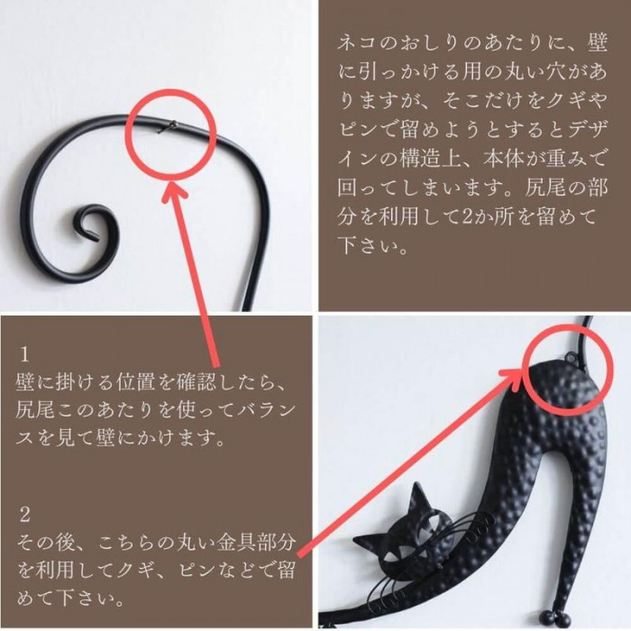 | 可愛らしいネコのウォールデコレーションです。軽くて簡単に飾れる小さ目のサイズです。白い壁によく似合います。伸びをしている姿をモチーフにしたおしゃれなデザインになっております。ネコ好きな方にピッタリなおしゃれな壁飾りです。 ※ビス、釘、ピンなど、壁に取り付ける為の部材は付属しておりません。 ※レトロ感、アンティーク感を出す為にわざと「磨り減ったように」塗装が施されています。傷ではなく商品の特徴です。 ※ハンドメイドの為、塗装やアイアンの溶接などに個体差がございます。 ※この商品はインテリアでのご使用を推奨しております。 ※屋外でご使用の際は、アイアン素材の錆や劣化等が避けられないことをご承知おきください。 ※クリヤーラッカー塗装で油膜を作り、メンテナンスをしていただく事によって長くお使いいただけます。 |