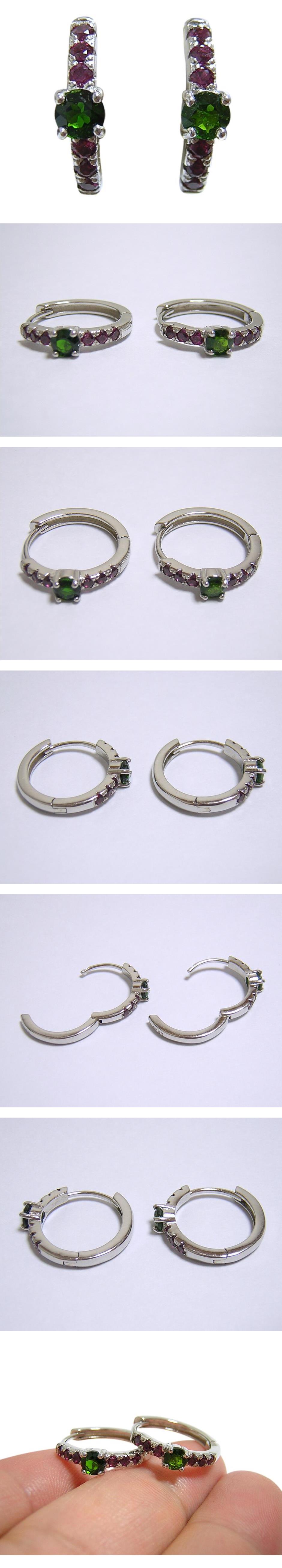 深い色合いが魅力的な、クロムダイオプサイドとロードライトガーネットを組み合わせたフープピアスです。