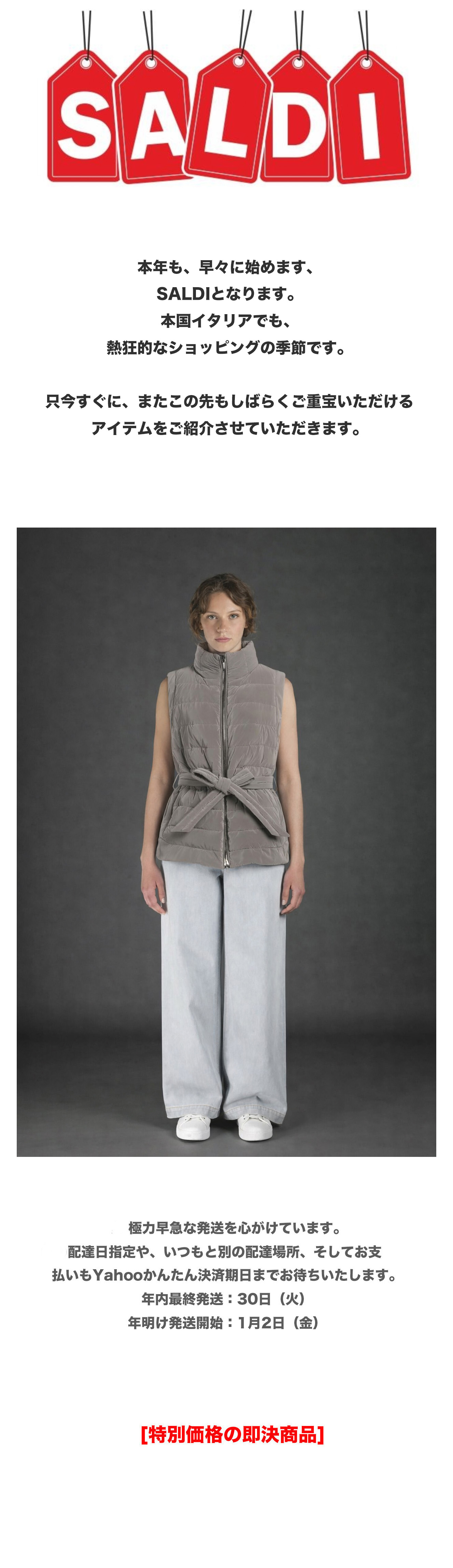 ●“HERNO ヘルノ”の、ビッグシルエットの、シャイニーなダウンジャケットでございます。イタリアを代表する老舗アウターブランドならではの、上質な素材選定と洗練されたデザイン性が際立つ一着でございます。表情豊かなファブリックを使用し、光の当たり方によって奥行きのある艶感を演出する、非常にラグジュアリーな佇まいが魅力です。ダウンには上質なグースダウンを使用しており、軽やかさと高い保温性を兼ね備えた、冬場から春に向けて心強い一着でございます。 ●首元はボリューム感のあるショールカラー仕様につき、マフラーいらずで防寒性とエレガンスを両立しています。程よくゆとりを持たせたシルエットでありながら、着用時にはすっきりとしたラインを描き、女性らしい上品な印象に仕上がります。フロントはスナップボタン仕様で、着脱もスムーズに行っていただけます。 ●内側には滑りの良い総裏生地を採用しており、袖通しも良く、ストレスのない着心地を実現しております。両サイドにはポケットを備え、実用性もしっかりと確保されたデザインです。デイリー使いはもちろん、きれいめなスタイルやエレガントな装いにも自然に馴染み、コーディネートを格上げしてくれるアイテムです。HERNOらしい都会的で洗練された雰囲気を存分にお楽しみいただけるダウンジャケットとなります。 ●リッチなレイヤード襟高デザインで、お顔周りもスッキリ見せていただけそうです。表ポケット中暖かネル生地仕上げ。総裏生地付き。 ●イタリア製 ●色:ブロンズゴールド系 ●素材:ポリエステル100% 裏生地:ポリアミド100% トリミング:コットン60% アセテート40% 詰め物:グースダウン80% フェザー20%*classe1 ●サイズ:イタリアサイズ42 *ビッグシルエットにつき、フリーサイズ感覚でご利用いただけそうです。下記詳細サイズもご確認の上、よろしくお願いいたします。 ●詳細サイズ(cm)置いた状態で: 裄丈:78.5(平置き時後ろ襟中心の付け根部分から、肩を通って袖口までの距離) *ドロップショルダー 身幅:65(右脇下~左脇下の直線距離) 着丈:73(後ろ襟の付け根~裾まで) 詳細サイズご参考 ※大よその採寸となります。 ※お品物はタイトルにございますもののみとなり、着合わせのお洋服や小物などがございましても、それらは含まれません。 ※素材の特性上、多少のことはご容赦くださいませ。 ※ご質問は、必ずご入札前にお願いいたします。(ご入札後、ご落札後の取引ナビからのご質問はお避け下さい) ☆☆☆ご連絡・お支払い(かんたん決済)☆☆☆ ご落札後24時間以内に、取引ナビからご連絡(お名前・ご住所全て。*サイズ選択いただけるオークションはサイズのご連絡も含め)・かんたん決済可能な方。 *銀行振込の場合は翌営業日、コンビニ決済はご落札後2日目の午前中まで、お支払いをお済ませ下さいませ。 電話応対は、一切致しておりません。取引ナビをご利用下さい。 ☆☆☆受け取り連絡☆☆☆ 製品到着後24時間以内。*出来る限り、到着日当日に受け取り連絡頂きましたら幸いです。 *配達日指定ご希望の際は、ご落札後、最長4日以内に「受取連絡」ができるようお願いします。(北海道・沖縄・離島の方は5日以内) *特別に記載をしました際には、そちらを優先させていただきます。 ☆☆☆同日に2点以上のご落札の場合☆☆☆ 「まとめて取引」を、最初にご選択ください。 *「まとめて取引」を、お届け情報などご入力前にご選択ください。同梱発送となり、一品分の送料のみとなります。 *「まとめて取引」をご選択されなかった場合、出品者側では送料訂正できませんので、予めご了承くださいませ。 新規IDの方は、こちらを必ずご覧くださいませ ☆☆☆ご入札及びご落札のキャンセルはしていただけません☆☆☆ ![]() 【お支払い】 合計金額 = ご落札価格 + 送料 ◆かんたん決済(ご落札後24時間以内に支払い手続きを完了ください。) *2点以上同日ご落札の場合は、『まとめて取引』をお選びください。 *領収書がご必要の際:ご落札後Eメールアドレスを、取引メッセージにてお知らせ下さい。電子領収書をEメールに添付してお送り致します。 !かんたん決済は、!の商品代金の支払い、受け取りを簡単安心に行える決済サービスです。ご落札者様は、クレジットカード、コンビニ支払い、銀行振込はもちろん、!マネー、Tポイントも利用できるお支払い方法です。 【発送】 発送は、クロネコ宅急便(元払い)のみとなります。迅速な対応を心掛けております♪ ☆宅急便送料---全国一律。(送料は自己紹介欄に記載しております) *配達時間指定:午前中、14-16時、16-18時、18-20時、19-21時。(時間指定ご希望の方は、必ず最初にお知らせください) *シンプル・丁寧な梱包を心がけておりますが、梱包のリクエストはご遠慮くださいませ。 *離島は、通常よりコンパクトな梱包となります。 *2点以上同日にご落札頂きましても、同梱の場合の送料は、一個口分のみとなります。*「まとめて取引」を操作頂いた場合に