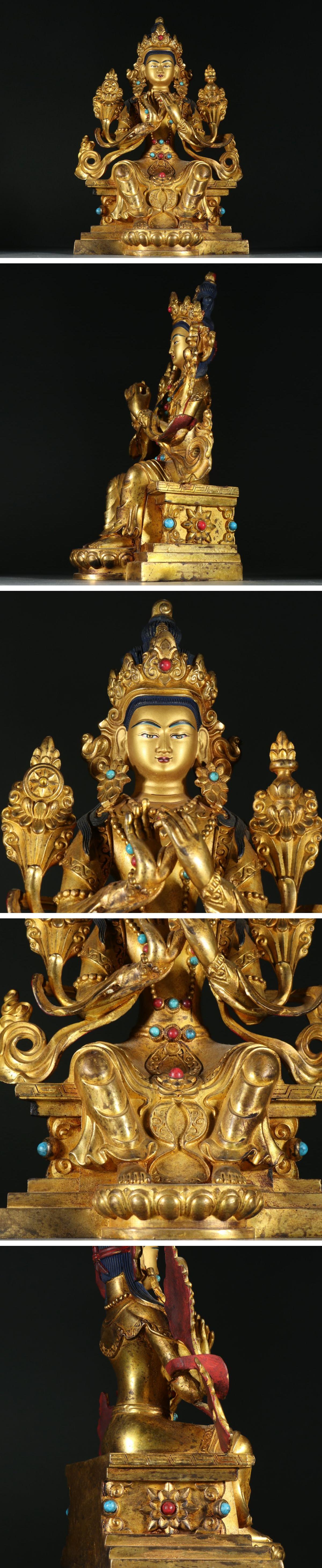 【清】関西某オークション購入 中国伝来 清時代物 銅金観音菩薩造像 当時物 時代コレクション7L12-AM5
