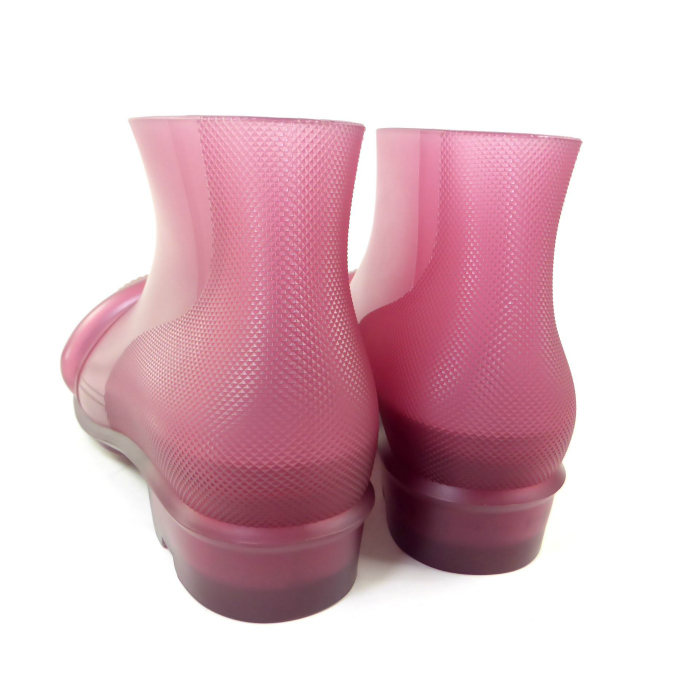 | 光を透過する半透明のゴム素材を使用したロエベのレインブーツ。 クリアピンクの可愛らしい色合いで、コーデの差し色にも使用しやすいカラーです。 ラバー製のため重量感は有りますが、保温・防水性が高く、足元の安定性にも優れ、歩行をサポートしてくれます。 秋雨など雨の日はもちろん、日常使いにもおすすめなおしゃれなデザインです。 |