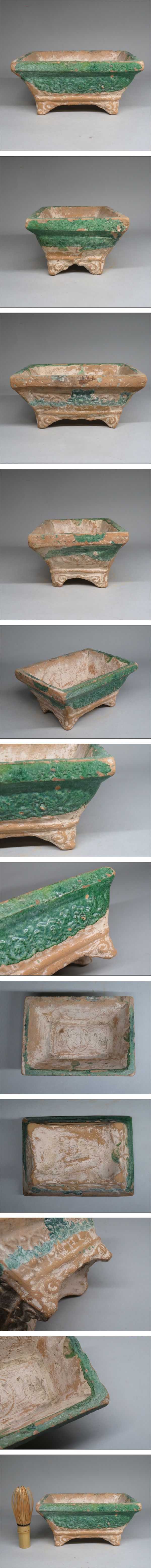 | 「都内コレクター所蔵品」漢時代 緑釉陽刻陶盤 中国美術 東漢時代 ◆加彩 花瓶 発掘 彩文土器 彩陶壺 | ||