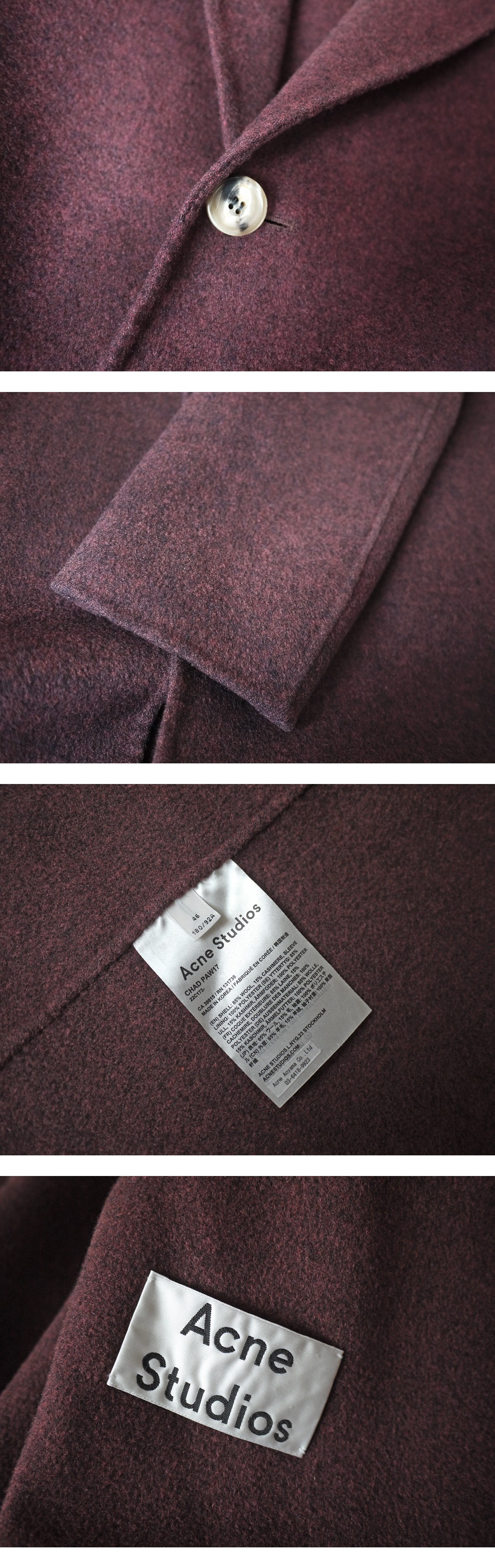 brand Acne Studios made in romania price \156,000(参考上代) Material wool 85% cashmere 15% Color Burgundy サイズ 46 肩幅49 着丈102 袖丈63 脇下身幅57(多少の誤差はご了承くださいませ) 状態 比較的使用感の少ないきれいなお品物です。特筆すべきダメージは見受けられず末永くご使用頂ける状態です。 |