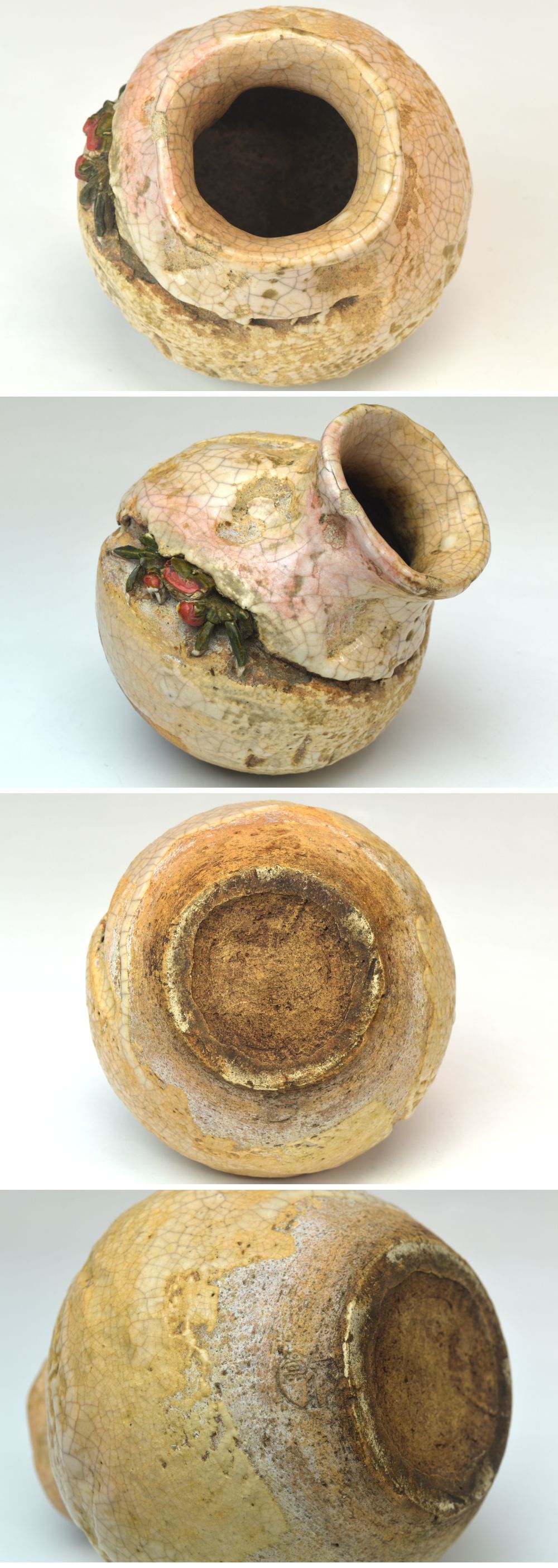 | 商品名 | 時代 楽山焼 天神蟹彫り花瓶 高さ11cm 本物保証 V2231【趣楽】 | ||