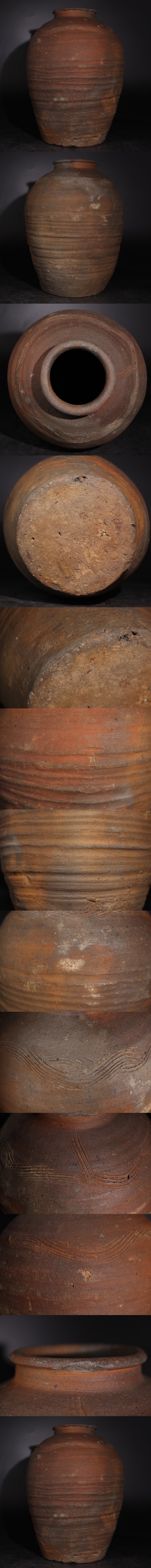 | 時代 古備前 波状文 壺 / 備前焼 窯変 花器 花瓶 飾壺 煎茶飾 .G3881 |