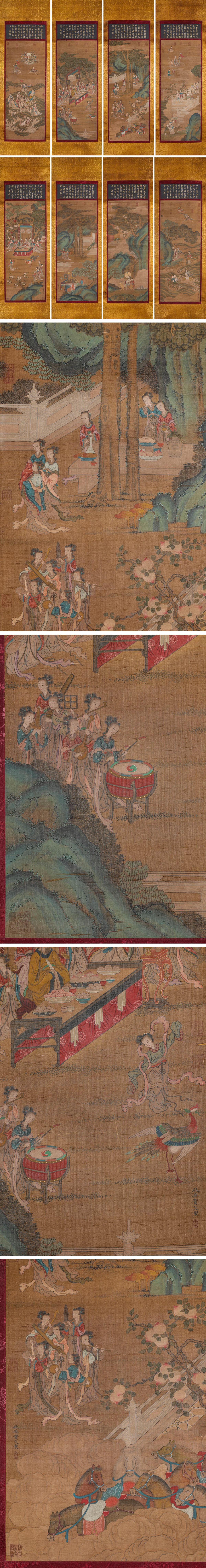 【清】某蒐集家買入「仇英寫」中国画家 絹本【人物故事圖・八対幅】肉筆保証 巻き物 中国字畫 中国書画 中国書畫8L3-LL