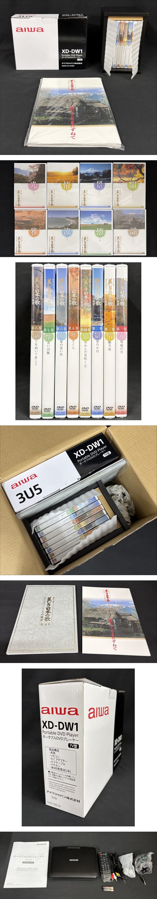 | 商品説明+++ ☆☆御覧いただきありがとうございます☆☆ 必ず最後まで説明文をお読みいただき納得していただいたうえで入札をお願いします。 他にもCDやレコードを出品しています。 商品写真を大量にアップしています。 携帯でアクセスされていらっしゃる場合は写真が全て表示されない場合がありますので、 パソコンでのご確認をお願いします。 スマホでアクセスされていらっしゃる場合は、モバイル表示ではなくPC表示でご確認お願いします。 ★★ DVD★★ 【未開封 / DVDプレイヤー付】 映像で綴る 美しき日本の歌 愛唱名曲紀行 こころの風景 第1巻~第8巻 ODV-18006 画像にあるものが商品の全てです。 こちらの商品について専門知識がありません。 写真を大量にアップしていますので、写真を見てご自身で判断をお願いします。 かなり前の商品ですので、経年劣化による日焼けやシミ・汚れなど 細かいことを気にされる方は入札ご遠慮ください。 商品の細かな状態確認、クリーニングなどはしていません。 すべて現状のまま発送になります。 ●発送について 発送方法は佐川急便(元払い)のみです。 お支払い手続き確認後、出来る限り迅速な発送を心掛けております。 発送日は基本的に日曜以外となります。 (発送に遅れが生じる場合はその旨ご連絡させて頂きます。) 送料についてですが、誤差の返金はできません。 もし請求サイズより1サイズ大きいサイズになりましても追加請求は致しませんので、ご安心ください。 ほかに何か気になることや疑問などありましたら、入札前に必ず質問欄からお願いします。 落札後の交渉などはお受けできません。 ●送料 発送方法は佐川急便(元払い)のみです。 【北海道】 2,000円 (北海道) 【北東北】 1,520円 (青森・秋田・岩手) 【南東北】 1,400円 (宮城・山形・福島) 【関東】 1,280円 (茨城・栃木・群馬・埼玉・千葉・東京・神奈川・山梨) 【信越】 1,280円 (長野・新潟) 【東海】 1,160円 (静岡・愛知・岐阜・三重) 【北陸】 1,160円 (富山・石川・福井) 【関西】 1,160円 (京都・滋賀・奈良・和歌山・大阪・兵庫) 【中国】 1,160円 (岡山・広島・山口・鳥取・島根) 【四国】 1,280円 (香川・徳島・高知・愛媛) 【北九州】 1,280円 (福岡・佐賀・長崎・大分) 【南九州】 1,280円 (熊本・宮崎・鹿児島) 上記一覧に掲載のない沖縄や離島の方は「ゆうパック着払い」での発送になります。 | |||