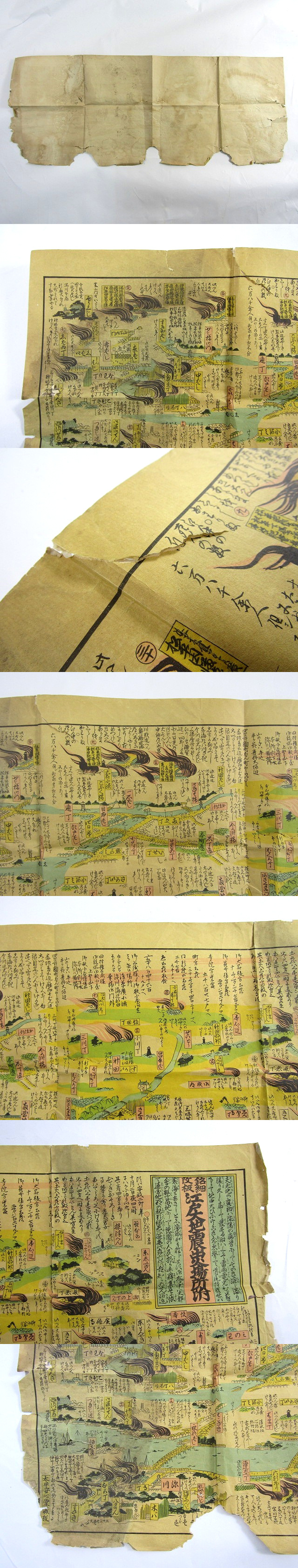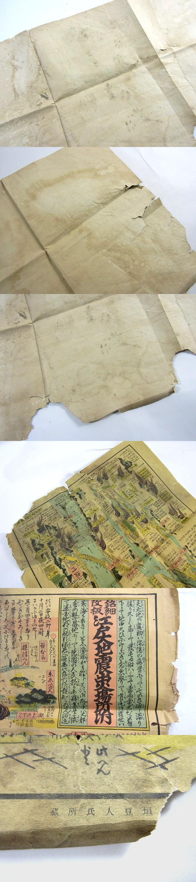 収集家様より 銘細改板 江戸大地震出火場所附 かわら版 古地図 古文書 資料 約38cm×96cm【説明欄に詳細写真有り】の出品です。