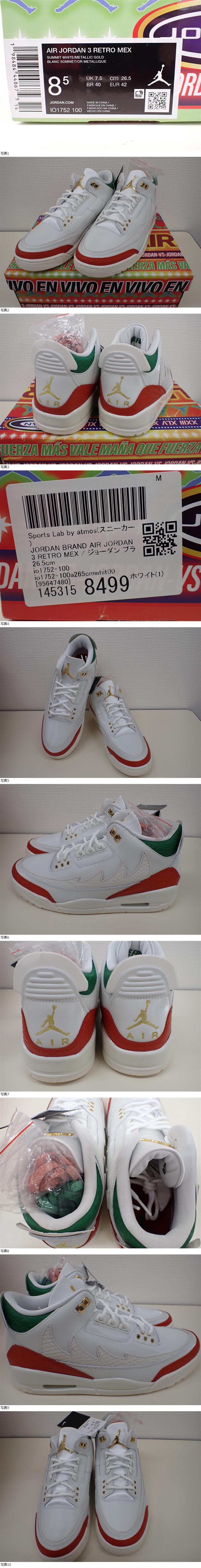 | 9497★ナイキ AIR JORDAN 3 RETRO MEX/エアジョーダン3 IO1752-100/26.5 /08 未使用 |